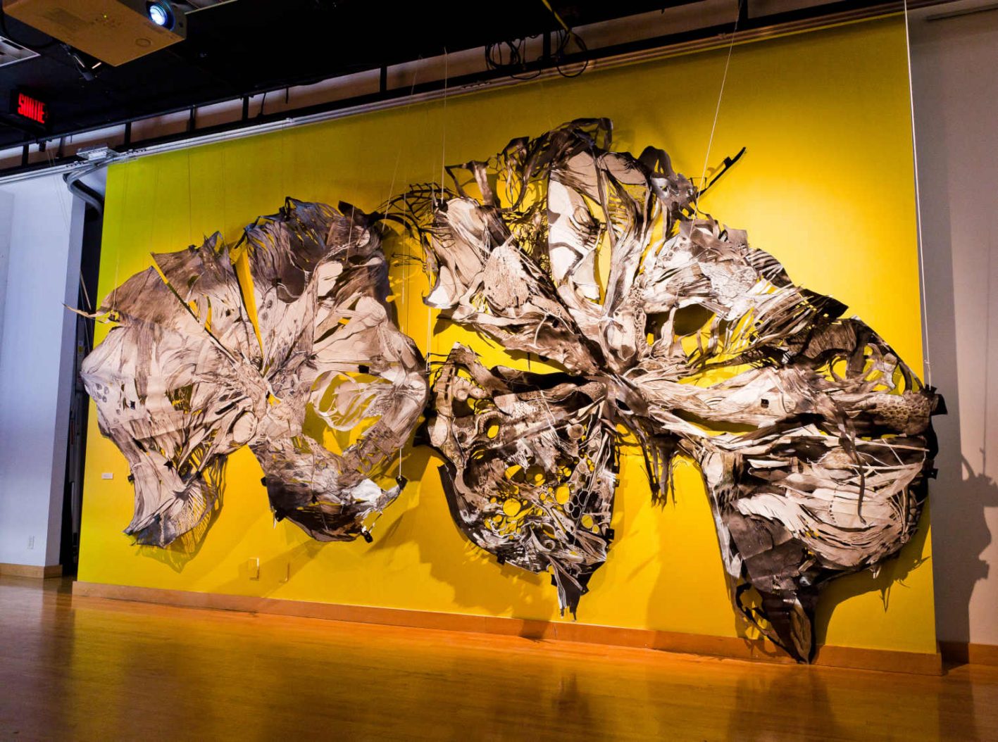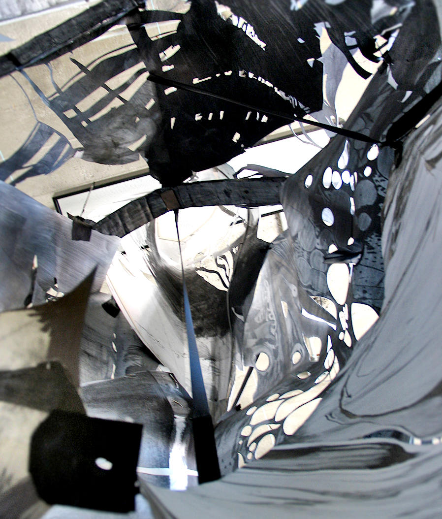 I built this paper sculpture in an empty 4th floor lunchroom in Concordia’s Visual Arts building. I saturated every surface with so much graphite that most days I looked like a coal miner. The piece was suspended from the ceiling on rubber ribbons, and it was light enough that it rolled gently when breezes blew in through the open window.