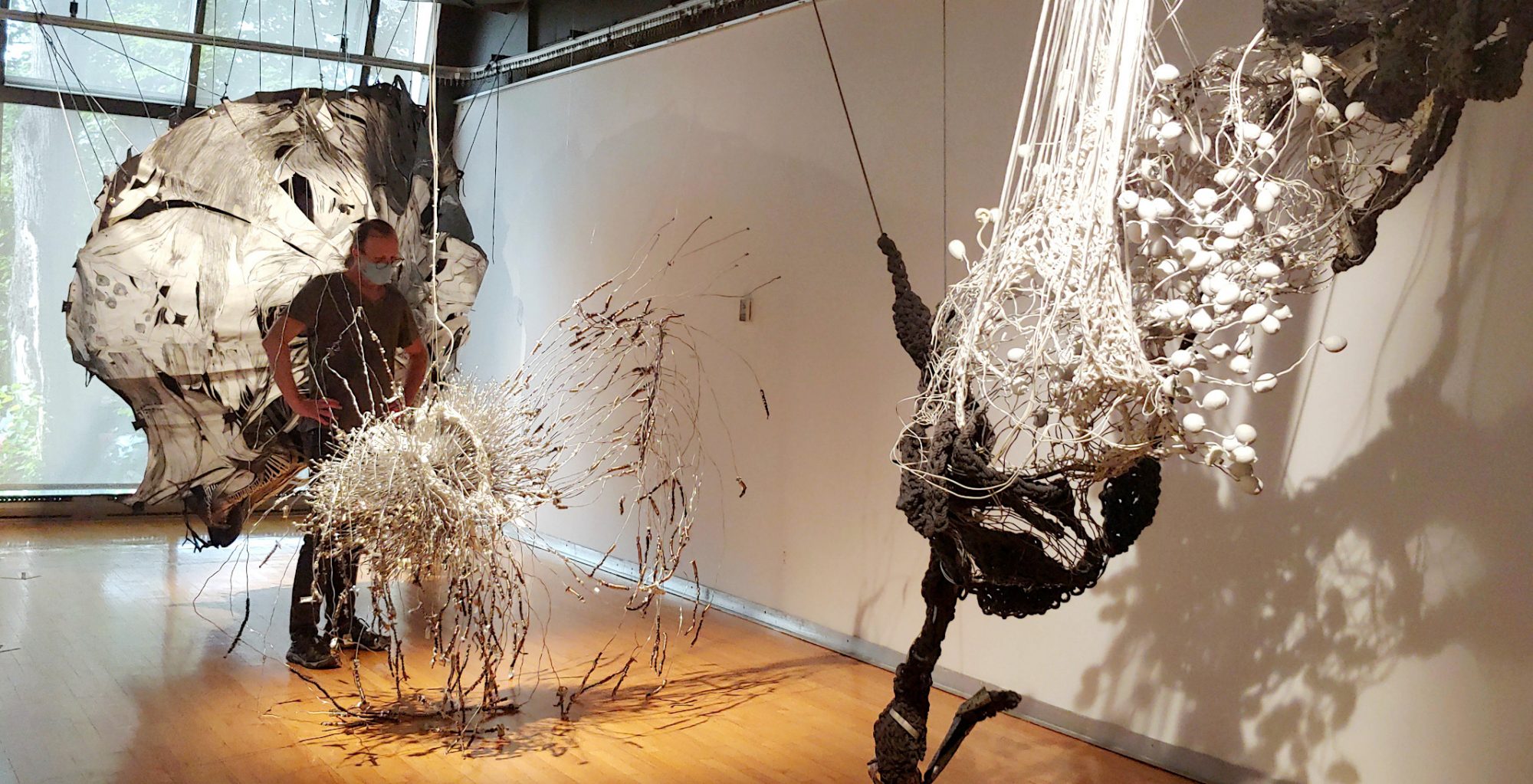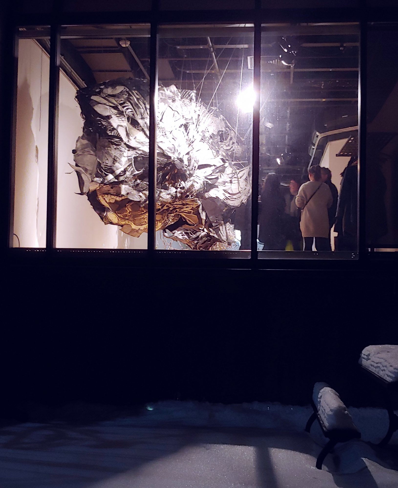 For years I was unable to find a place to exhibit it. I kept it and forgot about it. Then in 2018 I was able to borrow a space so that I could re-work it. I included it in the Ingrédients pour un Univers fait Maison exhibition, flat on the wall. In 2019 I was finally able to exhibit it as a three dimensional drawing at the Maison de la Culture de Notre-Dame-de-Grâce – Botrel, in 2019 where, somewhat ironically, it spent the COVID lockdown.